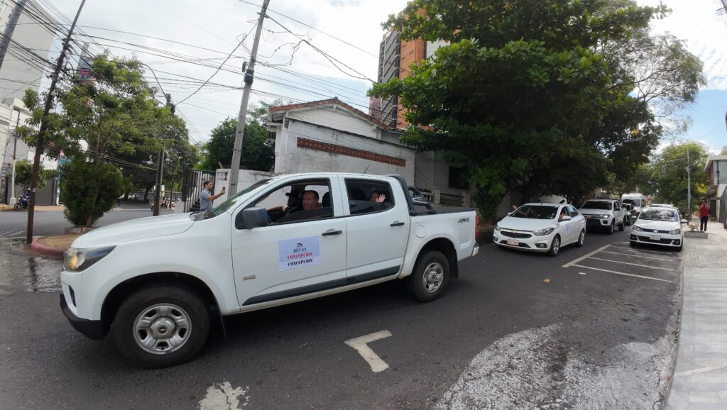Más de 100 colaboradores pertenecientes a ITAIPU, distribuidos en 30 vehículos, salieron de la sede de la Unidad de Becas de Asunción hacia las diferentes regiones del interior del país. Los equipos, además de prever y verificar la logística, estarán acompañando la jornada de evaluación.