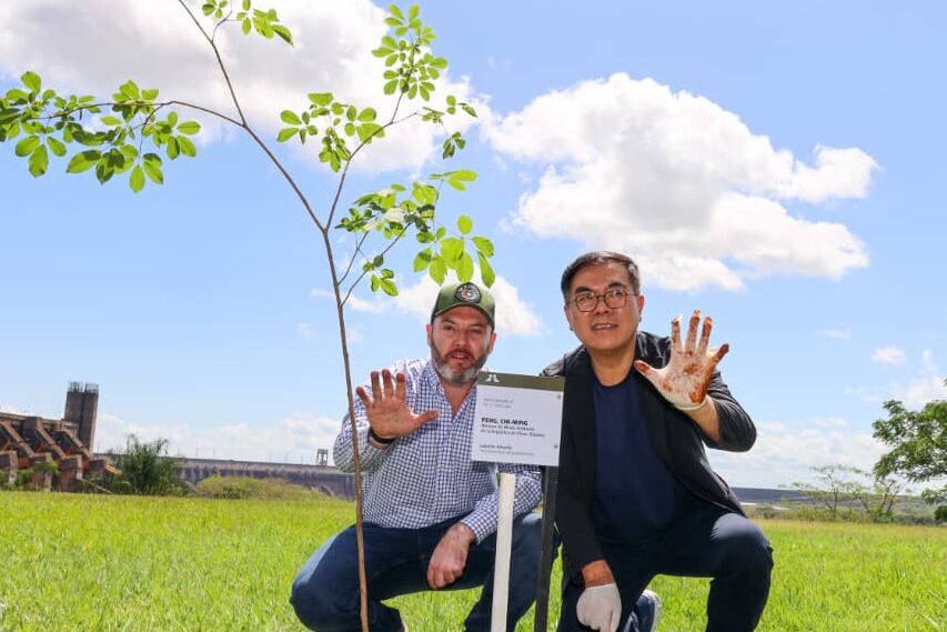 Uno de los momentos más destacados del recorrido fue la parada en el Mirador Margen Derecha, donde el ministro pudo presenciar una vista panorámica de la estructura de la represa y del caudal del río Paraná. Como parte del protocolo, la autoridad taiwanesa plantó un árbol en el Bosque de los Visitantes Ilustres.