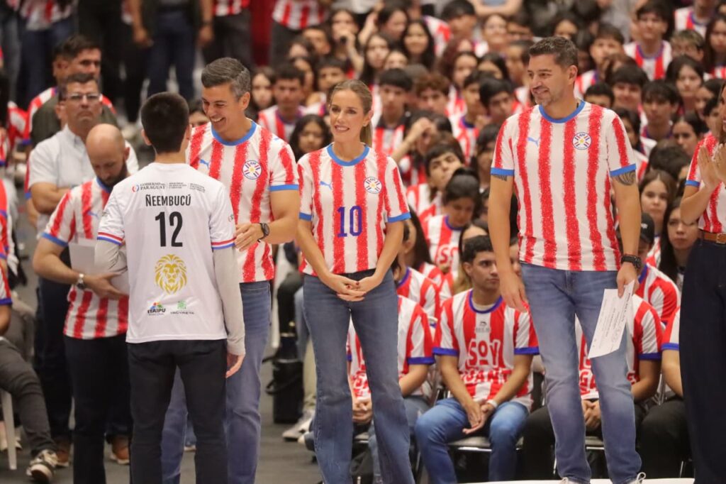 “Este país lo vamos a sacar adelante entre todos, hoy es un día de celebración y de fiesta. Les pido que salgamos de acá con la convicción y determinación de que este es un país gigante, que podamos decirles a todos, con nuestro trabajo y dedicación: Somos Paraguay y somos gigantes”, exclamó el jefe de Estado.