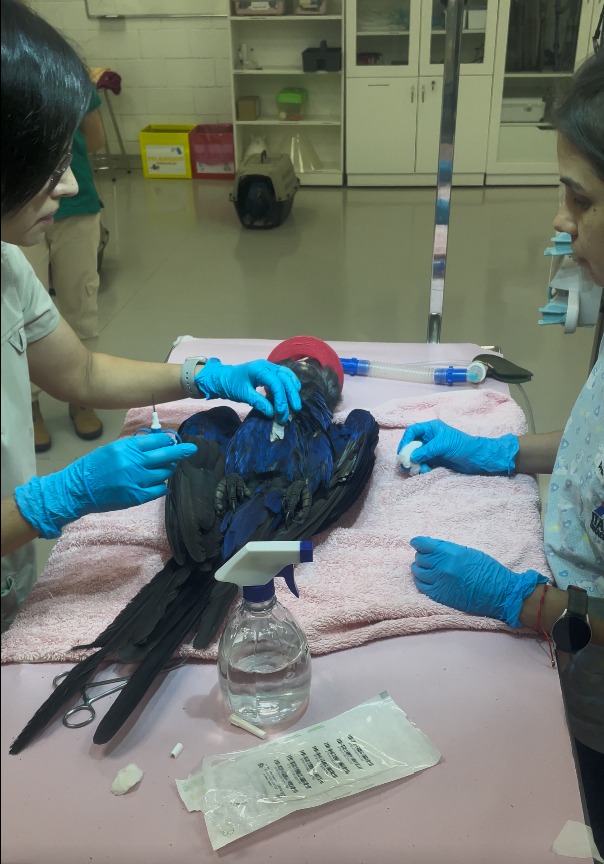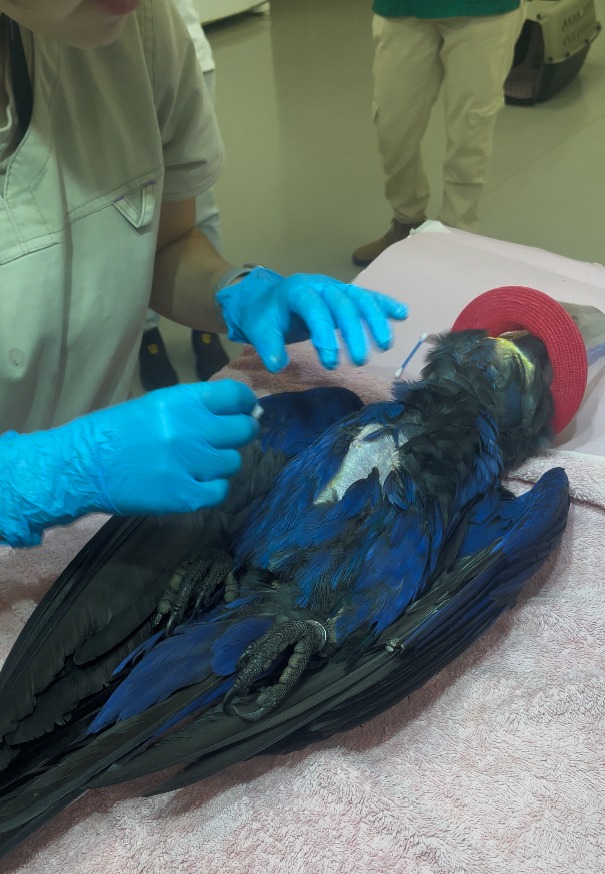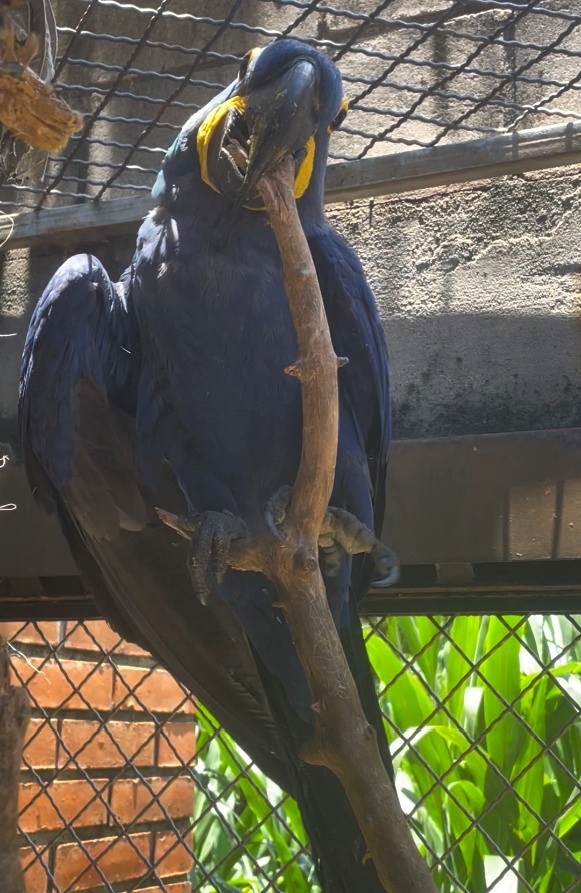 En septiembre del año pasado, el Tekotopa Centro Ambiental de ITAIPU recibió a un ejemplar de guacamayo azul o gua’a hovy (Anodorhynchus hyacinthinus), víctima del tráfico ilegal de fauna. El animal fue incautado en un procedimiento encabezado por el Ministerio del Ambiente y el Desarrollo Sostenible (MADES) y, tras meses de cuidado profesional, evoluciona favorablemente, por lo que se espera que pronto pueda ser liberado a su hábitat natural.
