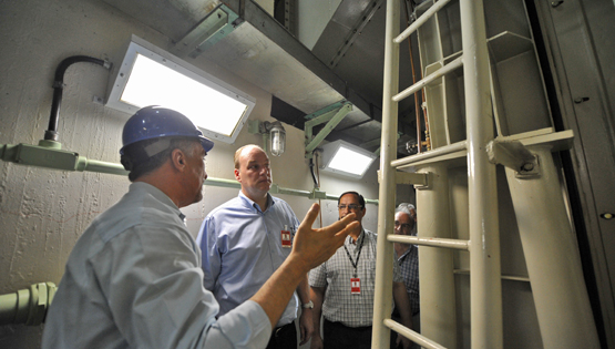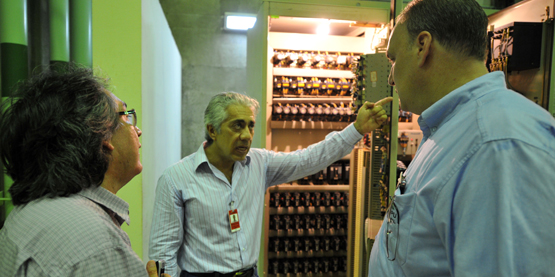 El director general de Itaipu Binacional, James Spalding; el director administrativo ejecutivo, Carlos París Ferraro, y Miguel Ángel Gómez, director financiero, realizaron un recorrido por distintos puntos del área técnica de la entidad, para verificar in situ detalles del proceso de generación de energía y las actualizaciones tecnológicas a ser realizadas.