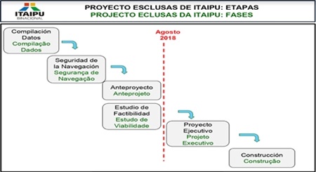 El director de coordinación ejecutivo de la ITAIPU Binacional, Ing. Pedro Domaniczky, explicó que, por resolución del Directorio Ejecutivo, se decidió la conformación de un grupo de trabajo técnico binacional, que establecerá los lineamientos para avanzar en la actualización del proyecto de la esclusa de navegación, desde el punto de vista técnico, económico y ambiental, con precisión de costos reales y los pasos a seguir para una eventual implantación del mencionado proyecto.