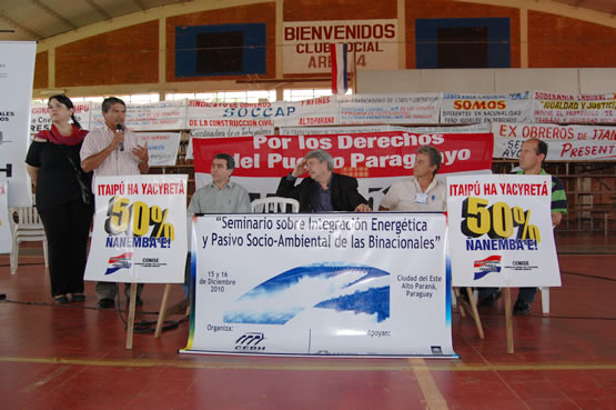 El foro también cuenta con el apoyo del Programa de las Naciones Unidas para el Desarrollo (PNUD), capítulo Paraguay. Participan del encuentro, que se entenderá hasta el jueves 16 de diciembre, representantes de diferentes organizaciones sociales, campesinas e indígenas, además de delegaciones de ex obreros de la Itaipu Binacional que llegaron desde diferentes puntos de la región y del país.
