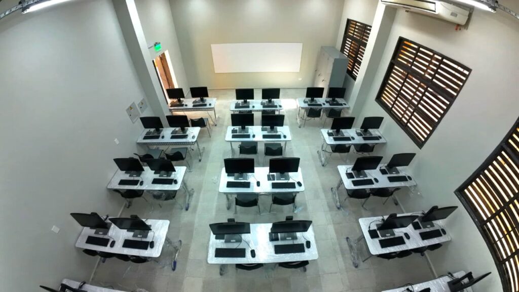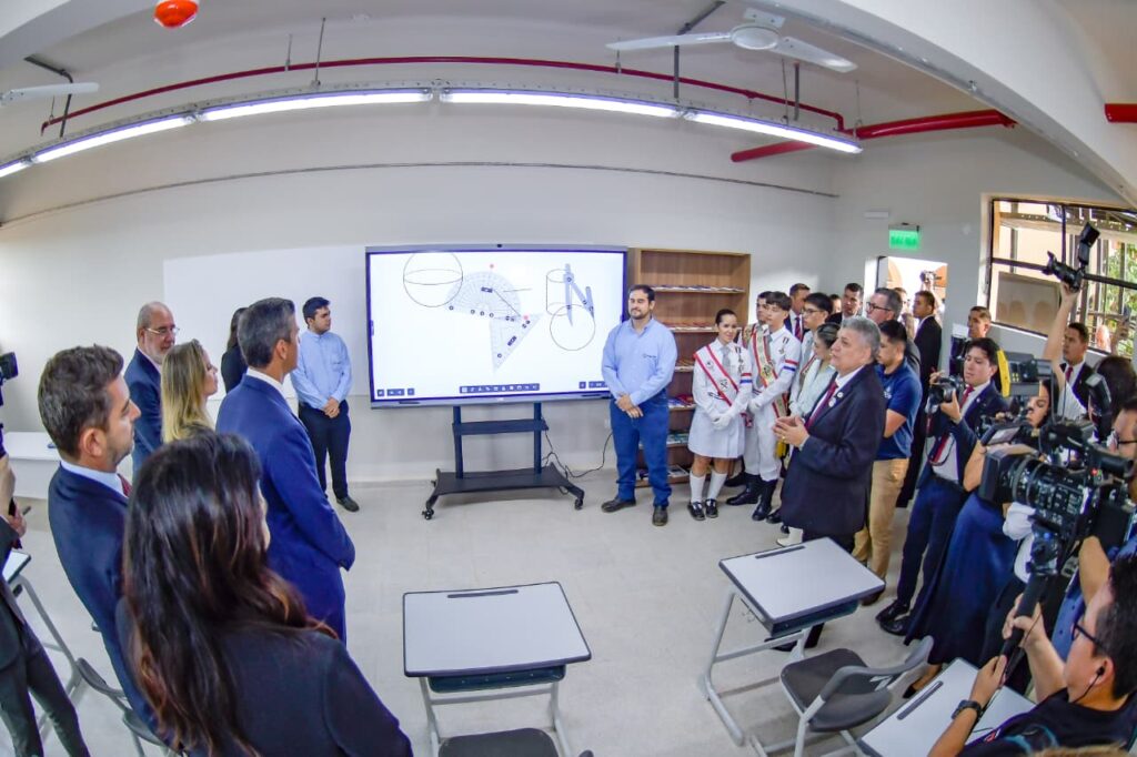 La intervención también incluyó la renovación total del equipamiento. Las aulas fueron dotadas de mobiliario moderno, pizarras interactivas y nuevos recursos pedagógicos. Igualmente, se actualizaron los laboratorios y el sector informático.