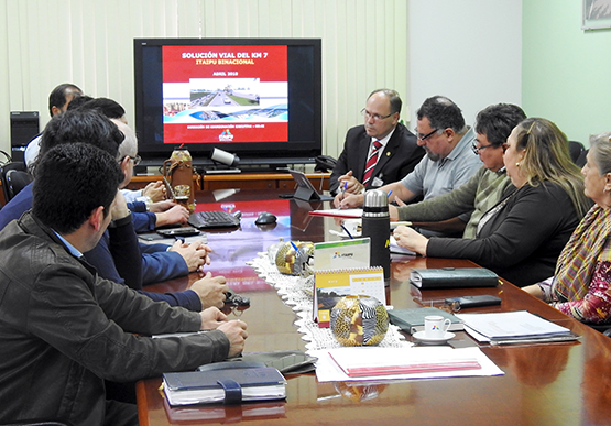 Representantes de la Dirección de Coordinación de la ITAIPU, encabezados por el director Pedro Domaniczky, realizaron una presentación sobre el proyecto de solución vial del km 7 de Ciudad del Este.