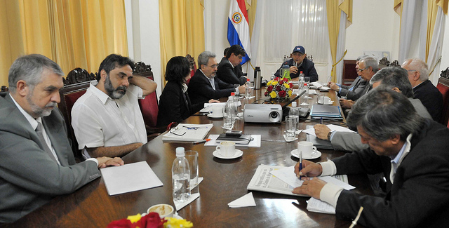 El Presidente de la República, Fernando Lugo se reunió con la Mesa Energética este lunes 13 de diciembre en el Palacio de López. El director de Itaipu Gustavo Codas presentó un informe de los avances en la construcción de la línea de 500kV que transmitirá energía desde la Central Hidroeléctrica en Hernandarias hasta la subestación de Villa Hayes.