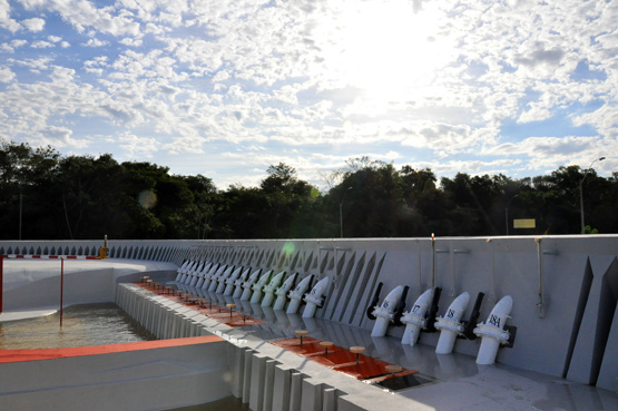 Lo que de por sí ya generaba un sentimiento de satisfacción con el simple hecho de observar los resultados preliminares de su restauración, demostró su magnificencia tras la apertura de sus pequeñas 14 compuertas que dieron paso a las aguas del estanque hacia el vertedero.