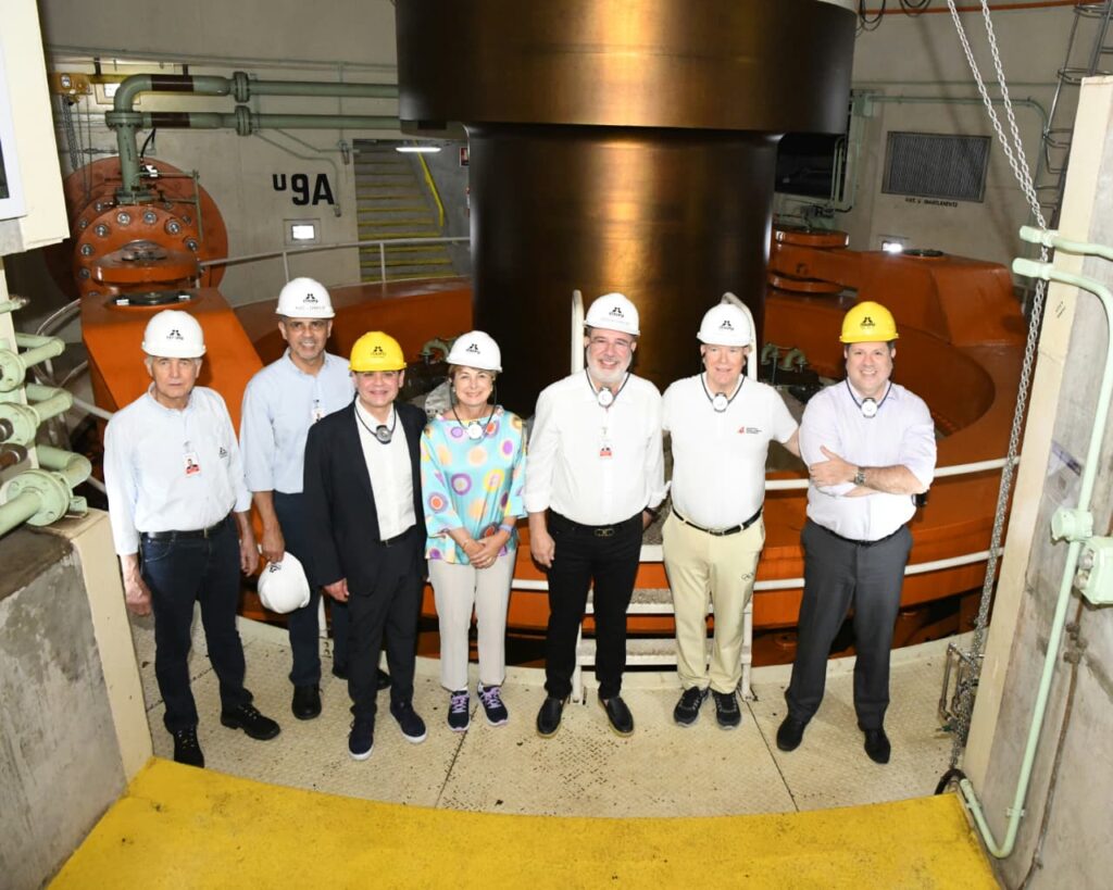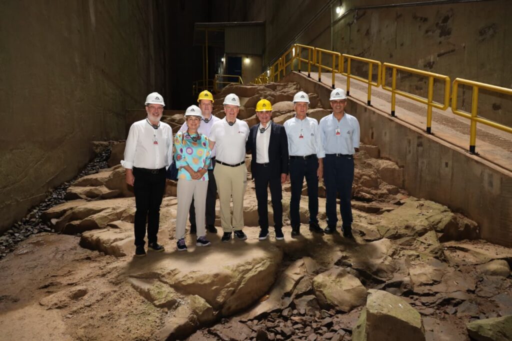 En el Edificio de Producción, la delegación visitó la Sala de Control Central y la Cota 108, y en la Cota 92 observó el eje de la turbina de la Unidad Generadora 9A. Asimismo, en la Cota 40 los miembros de la comitiva hicieron contacto con el lecho del río Paraná.