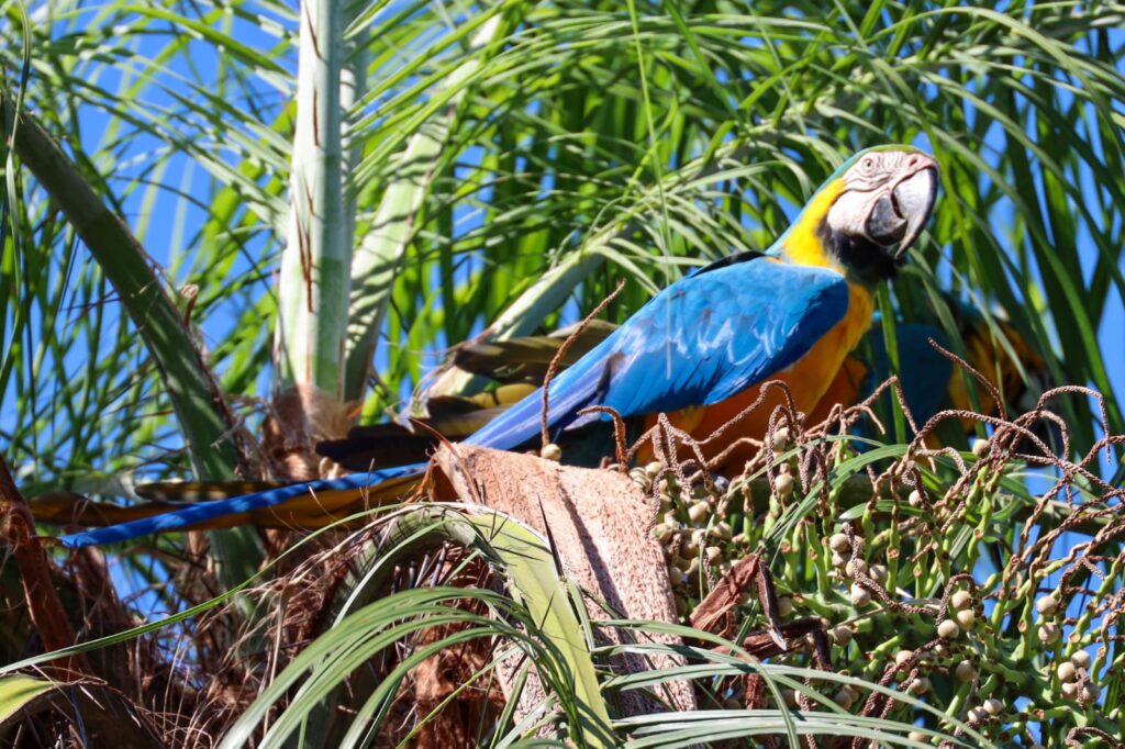 El avistamiento de esta pareja de Ara ararauna simboliza un renacer de la biodiversidad en el Refugio Biológico de Mbaracayú y marca un hito en el esfuerzo binacional por restaurar los ecosistemas del Bosque Atlántico del Alto Paraná (BAAPA).