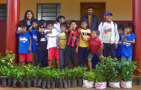 En primer lugar se ha procedido a la capacitación sobre técnicas y procedimientos de plantación y los cuidados culturales que deben realizarse posteriormente. Técnicos de Itaipu, maestros, padres de familia, juntamente con los niños y niñas, realizaron el esfuerzo mancomunado para plantar las mudas en torno a las escuelas. Las familias también recibieron mudas para plantarlas en torno a su comunidad (tekoha).