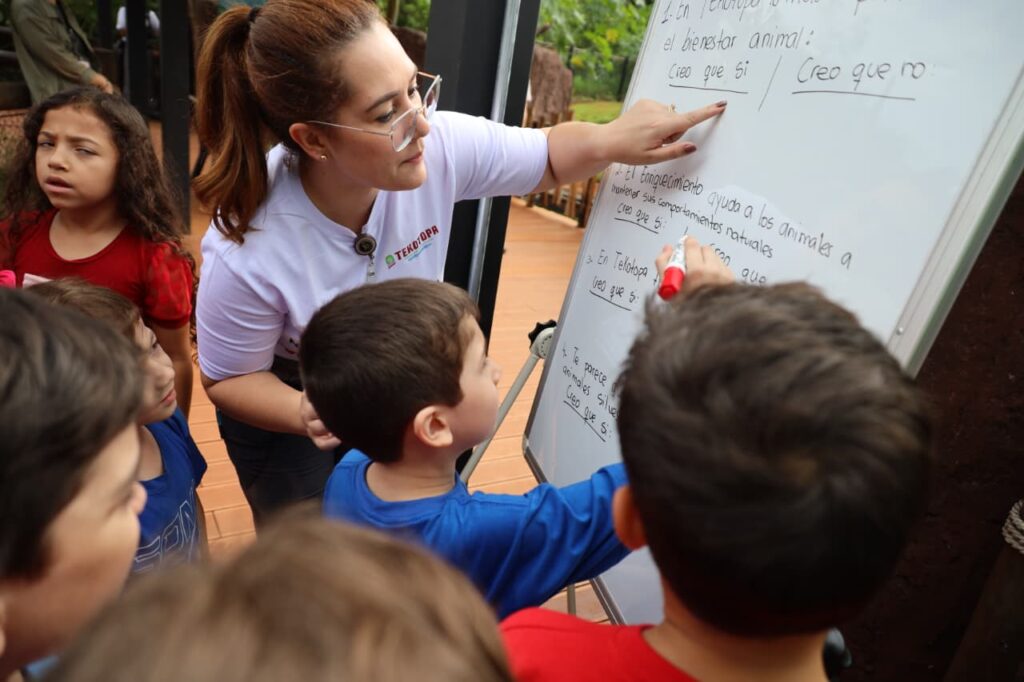 La actividad contó con la guía de los profesionales de la División de Educación Ambiental, quienes ofrecieron una explicación didáctica para orientar a los visitantes acerca de la relevancia de estos mamíferos y los recursos utilizados para garantizar su bienestar bajo cuidado humano en el recinto de ITAIPU.