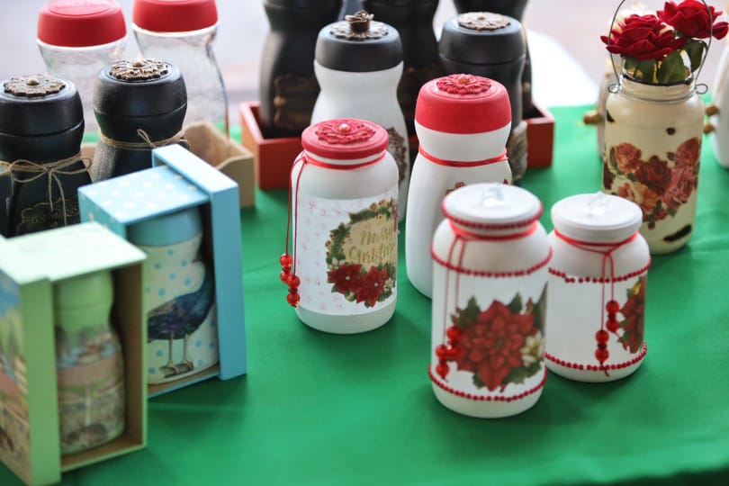 Lilian Gauto, es otra de las artesanas que se encuentra exhibiendo sus productos, es de Asunción y cuenta con un emprendimiento familiar denominado “Tienda Emanuel Innovaciones”, que se inició hace más de tres años, elaboran varios productos a partir de la reutilización de frascos y botellas de vidrio con un toque artístico moderno y de utilidad variada.