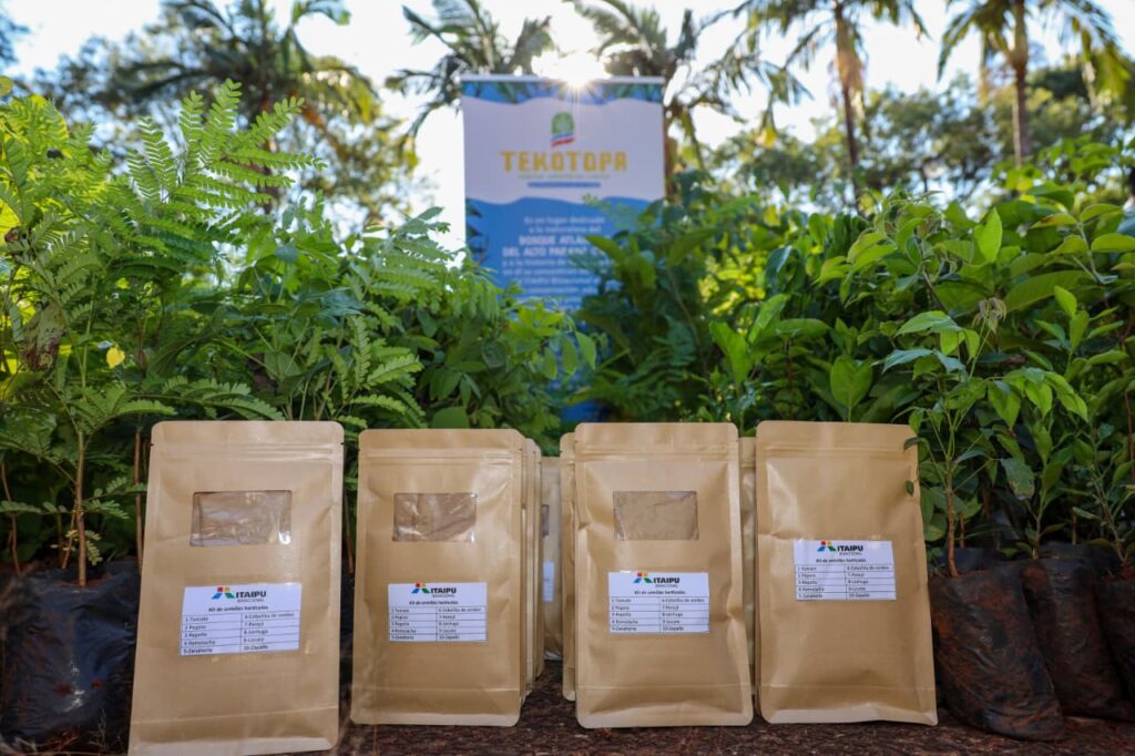En la ocasión, la Binacional entregó alrededor de 1.000 plantines de especies forestales, frutales y medicinales; materiales didácticos; un kit de elementos de trabajo para campo; rollos de mallas media sombra; sobres de semillas para horticultura; bidones de humus líquido; así como diversos tipos de basureros y contenedores para residuos.