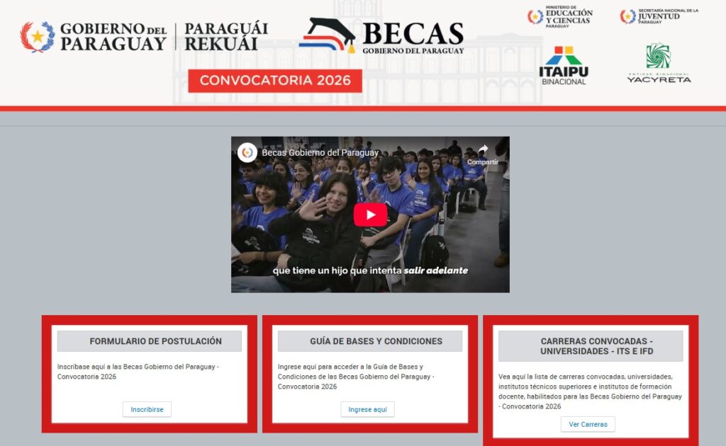 La etapa de postulación para la Convocatoria 2026 del Programa de Becas Gobierno del Paraguay será hasta las 23:59 del 5 de enero próximo, por lo que se insta a los jóvenes a completar el formulario online y cumplir de esta forma con este primer requisito del proceso.