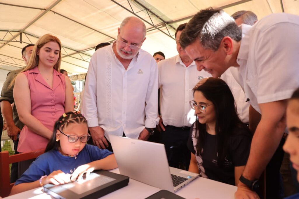 “Este acto va mucho más allá de simplemente la entrega de equipos tecnológicos, estamos aquí porque queremos reafirmar nuestro compromiso con la inclusión en Paraguay; que todas las personas tengan las mismas oportunidades para desarrollar todo su potencial”, expresó el jefe de Estado.
