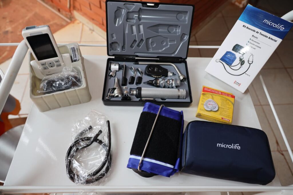 Posteriormente, tuvo lugar el acto de entrega de equipamientos médicos y mobiliarios para las Unidades de Salud de la Familia (USF) de Tarumá y Mbatoví. Esta inversión de la Binacional, que alcanza unos G 316 millones, permite reforzar la capacidad operativa de los establecimientos sanitarios y acompañar la política pública de fortalecimiento del primer nivel de atención.
