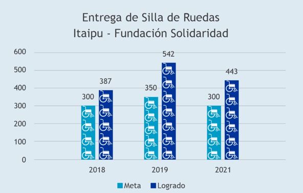 Mediante la cooperación financiera de ITAIPU Binacional, la Fundación Solidaridad ha entregado 1.372 sillas de ruedas, desde el 2018 hasta la fecha. Han sido beneficiados pobladores de 14 departamentos del país.