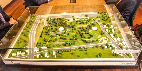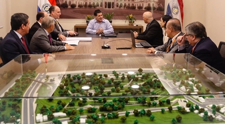 El director general paraguayo de la ITAIPU Binacional, James Spalding, acompañado del director de coordinación ejecutivo, Pedro Domaniczky, presentaron al presidente de la República, Horacio Cartes, los avances de las obras del futuro Parque Urbano, que está ubicado frente al Parque de la Salud, y es financiado por la Entidad, por un monto aproximado de G. 2.500 millones, en una primera fase. Su inauguración está prevista, inicialmente, para fines de setiembre.