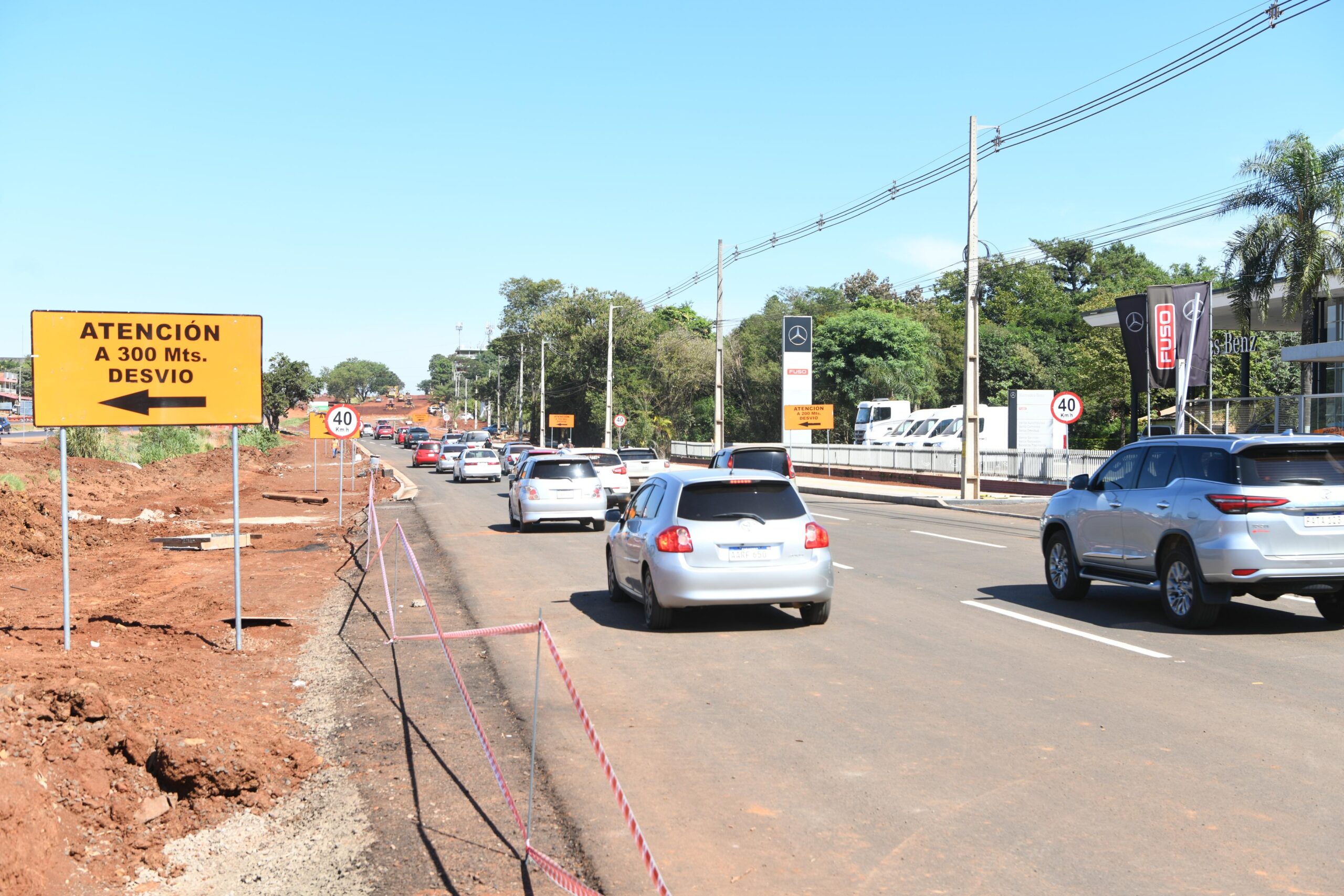 Los conductores que transiten en la dirección Asunción-Ciudad del Este por la ruta PY02 deberán tomar el desvío hacia el lado Acaray de la vía nacional, a la altura del kilómetro 10,5, y reincorporarse al carril habitual (lado Monday) en el kilómetro 9,5.