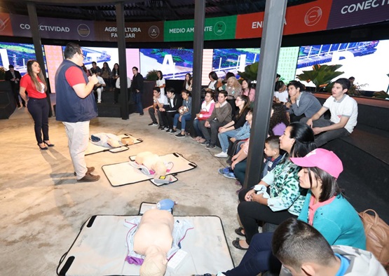 Estudiantes reciben orientación sobre reanimación cardiopulmonar en stand de la Entidad en la Expo