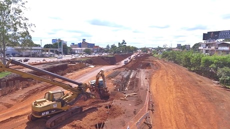 Los trabajos de perforación y cargamento de hormigón para la instalación de la pantalla de pilotes que sostendrán los dos puentes sobre la Ruta PY 02, se realizan sin contratiempos, al igual que las tareas de excavación a lo largo del paso inferior, que ya presenta un nivel mucho más bajo que la calzada anterior.