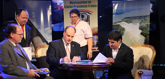 Ante más de mil testigos se realizó la firma de convenio de cooperación entre Itaipu Binacional y Ciudad Pdte. Franco, este miércoles 8 de septiembre, en la plaza central del mencionado municipio. El director general de Itaipu, James Spalding y el intendente Alcides Fernández, plasmaron el acuerdo consistente en el aporte de cerca de 900 millones de guaraníes por parte la entidad.